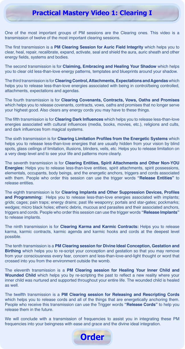 The Angelic Mastery videos (pink boxes) and Practical Mastery videos (blue boxes) only cost $27.  The Angelic Mastery Sequences (lavender boxes) cost $33. These videos are a great value because you can listen to them more than once and each time you view one, you receive additional healing support.